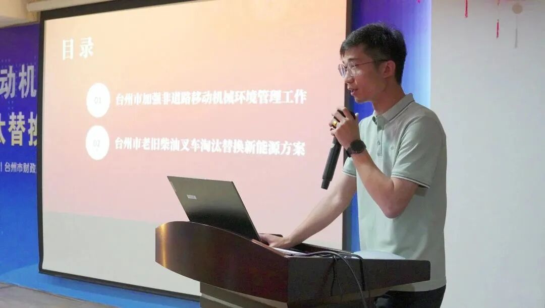 会议解读了《关于加强非道路移动机械环境管理工作的通知》和《台州市老旧柴油叉车淘汰替换新能源工作实施方案》,并指出:一要提高认识,使用新能源车辆是大势所趋,是国家政策要求,要充分认识到不使用新能源车辆在重污染管控时对企业带来的负面影响。二要积极融入,要以这次会议为契机,积极主动了解新能源车辆相关政策。三要强化服务,生态环境部门将围绕新能源车辆的推广做好服务,对及时更新新能源叉车的企业在政策方面给予补贴支持。
