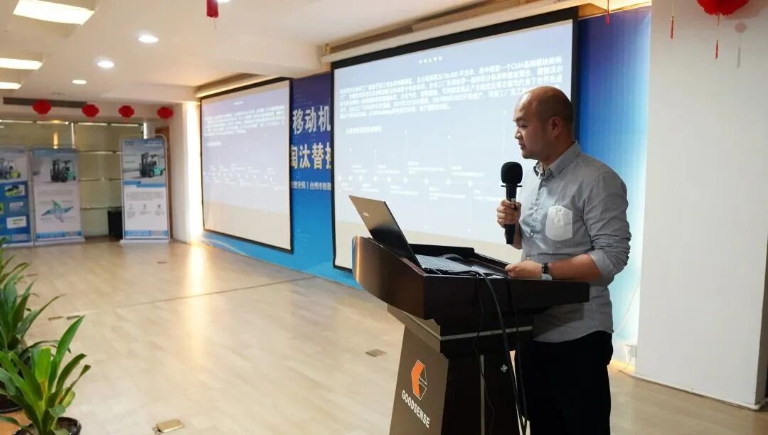 亚欧汽车制造台州有限公司作为新能源叉车使用企业代表进行经验介绍,根据工厂的发展策略,亚欧汽车自建厂开始就全部选择电动叉车进行物料运送,并就成本控制、安全管理、维修保养等方面进行交流分享。